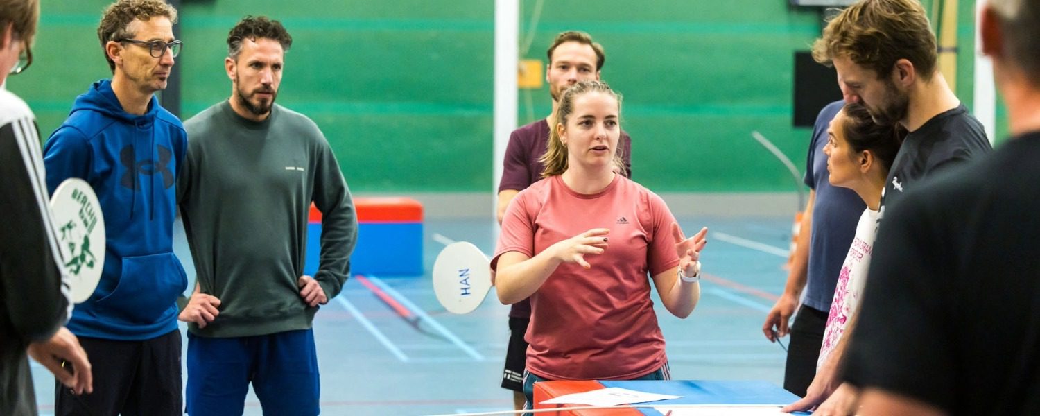 Ik gaf ze een les pickleball volgens de regels. Les 2 gooide ik het open: “Ga maar aan de slag, en probeer al spelend nieuwe spelregels te bedenken.” Ze doken er vol in. De nethoogte en het veld stonden vast, maar verder... alles mocht. Hoe vaak stuiteren? Welk racket? Ze bedachten de ene na de andere regel. Een leerling zei letterlijk: “Het werkt motiverend als je zelf iets mag bepalen tijdens de les.” BINGO! Alles kwam samen in die lessen: creativiteit, autonomie, samenwerken, feedback geven en ontvangen...