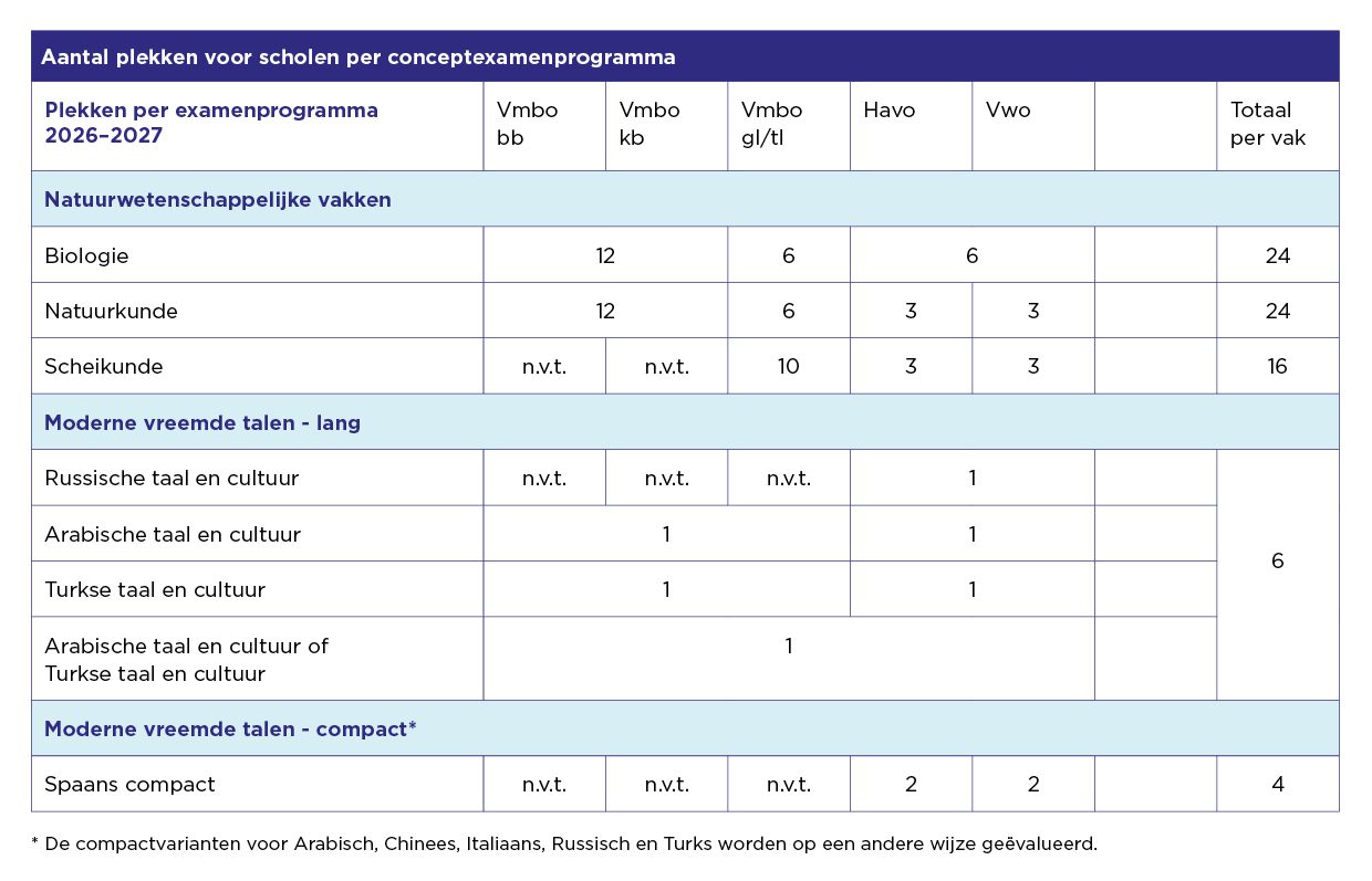 Voor de compactvarianten Arabisch, Chinees, Italiaans, Russisch en Turks op havo-vwo evalueren we de conceptexamenprogramma’s in een aantal bijeenkomsten. Informatie hierover komt later beschikbaar. Heb je belangstelling, mail dan naar beproevenexamenprogramma@slo.nl.