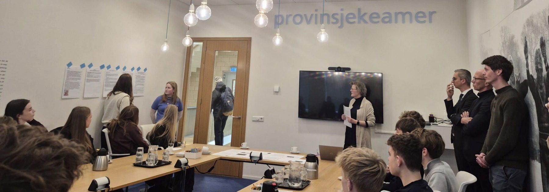 Op het provinciehuis bleek dat de tweetalige adviezen van de leerlingen serieus bestudeerd waren. Leerlingen gaven eerst zelf een pitch bij hun advies. Vervolgens gingen de gedeputeerde en de ambtenaren in gesprek met de leerlingen. Ze gaven de leerlingen feedback en hadden veel nuttige aanvullingen voor de leerlingen. Een aantal van de adviezen van de leerlingen was zo goed dat die op de vergaderlijst zijn gezet. Voor de leerlingen natuurlijk geweldig dat hun adviezen echt meegenomen zijn!