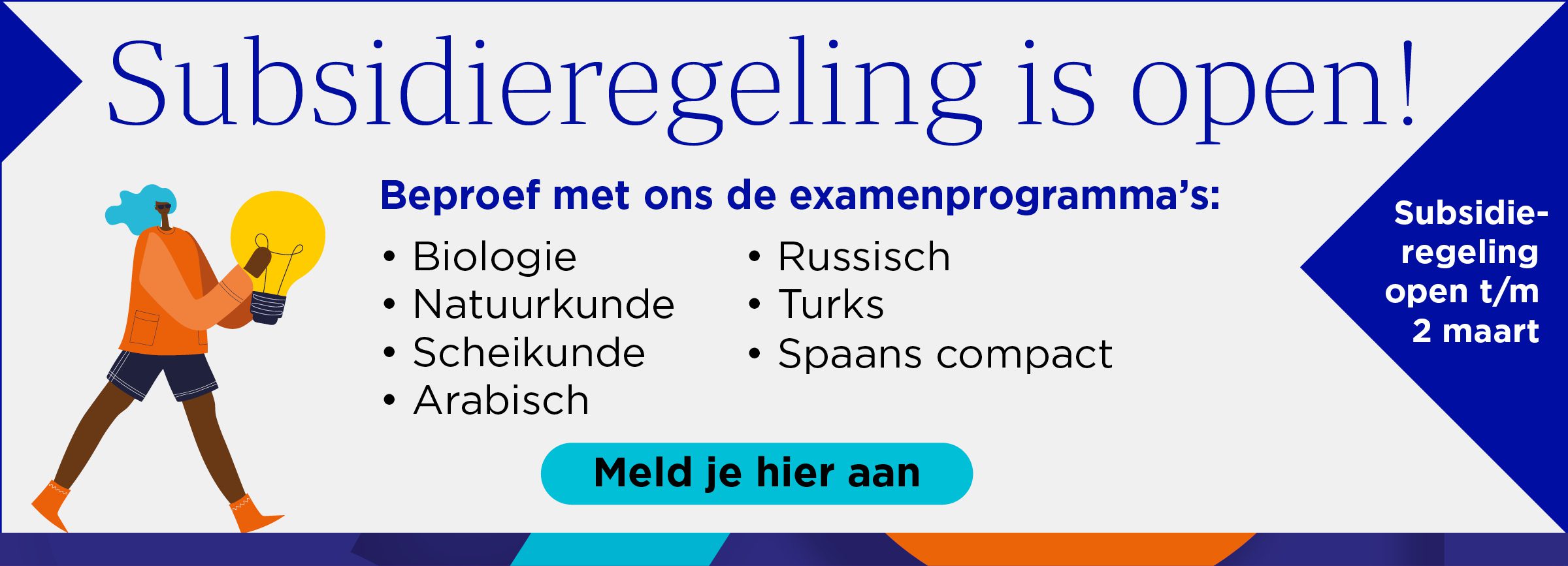 Vanaf vandaag is de subsidieregeling open voor fase van beproeven die in september 2026 start. Aanmelden met jouw school kan nu via DUS-i voor de volgende vakken:
