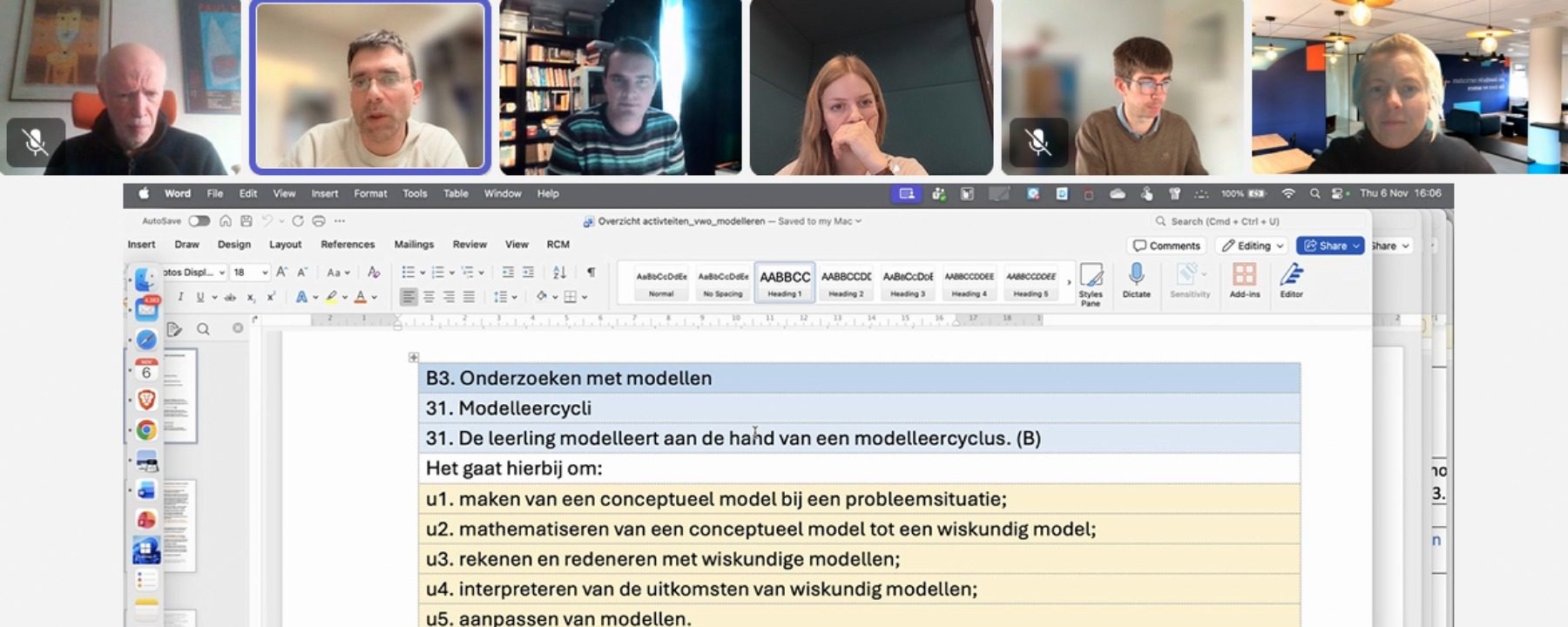 Donderdagmiddag 6 november kwamen negen leraren, opleiders en vakdidactici van wiskunde havo-vwo online bij elkaar, samen met onze SLO-collega's. In de voorbereiding op het beproeven van de conceptexamenprogramma’s (en –syllabi) voor wiskunde havo-vwo zijn zij sinds eind mei aan de slag om in groepjes suggesties, aanwijzingen en tips uit te werken om lessen te ontwerpen op basis van de conceptexamenprogramma's en -syllabi.