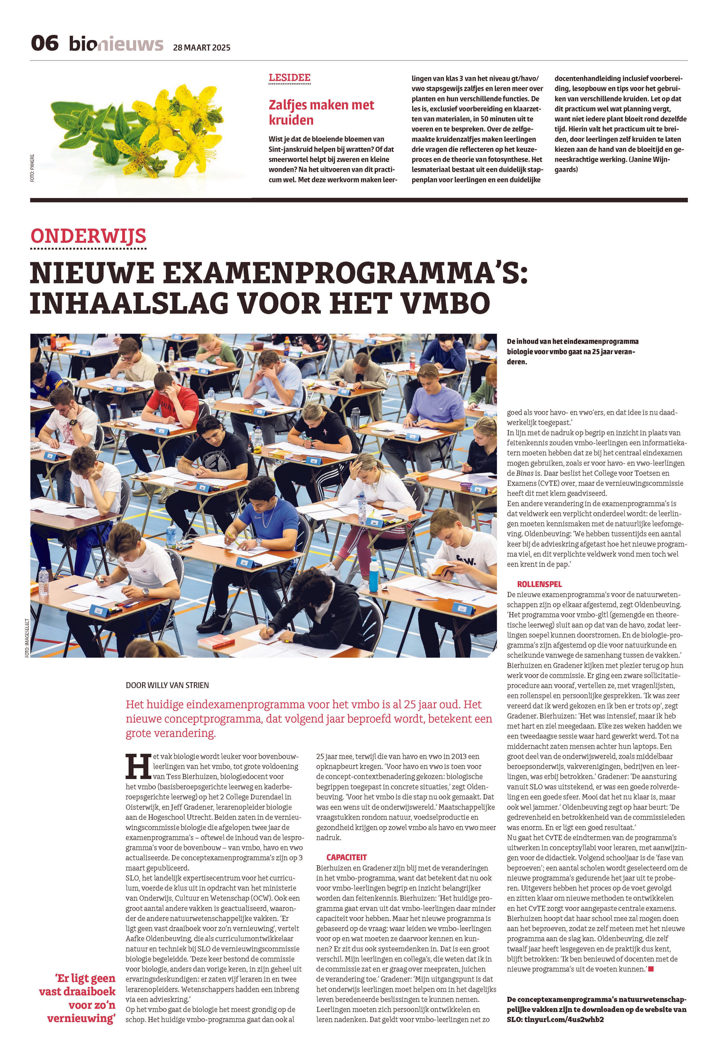 Het huidige eindexamenprogramma biologie voor het vmbo is al 25 jaar oud. Het nieuwe conceptexamenprogramma, dat volgend jaar 2026-2027 beproefd wordt, betekent een grote verandering.